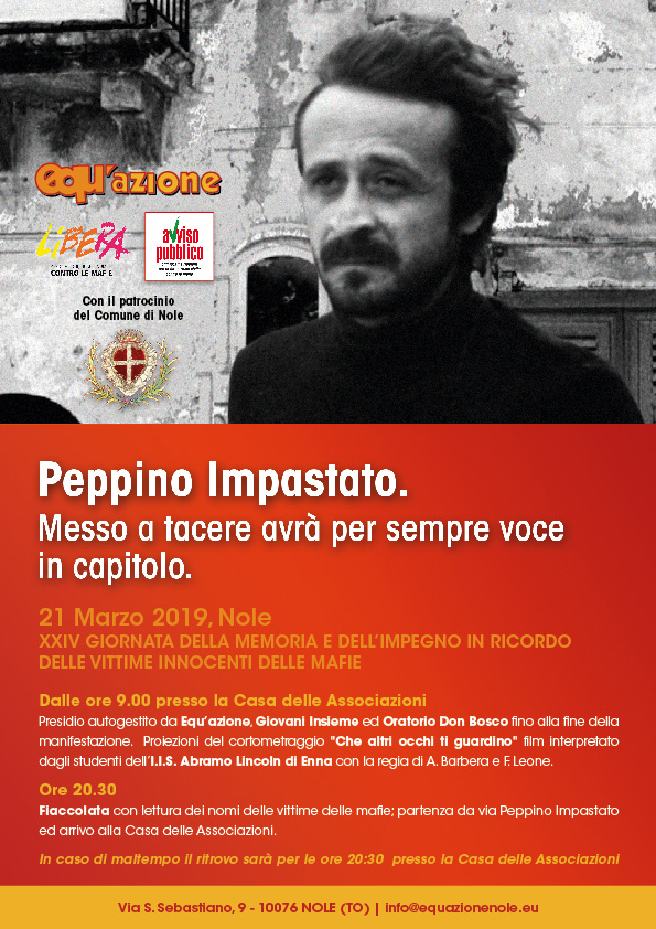 -ore 20,30 Fiaccolata con lettura dei nomi delle vittime delle mafie con partenza da via Peppino Impastato ed arrivo alla Casa delle Associazioni di via Torino 127.