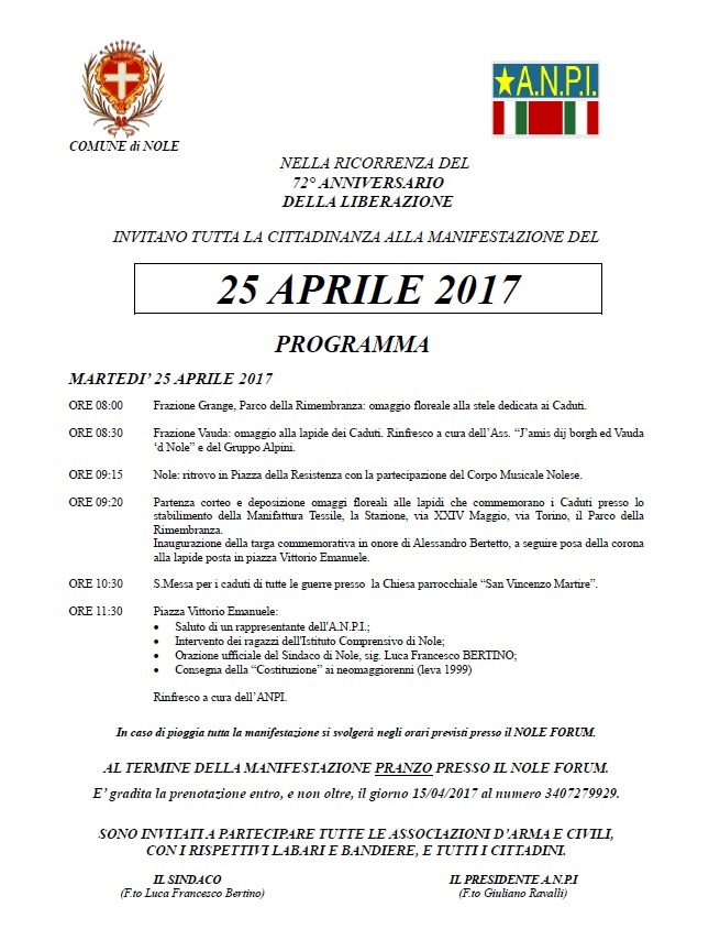 | Organizzazione | ANPI e Comune di Nole |