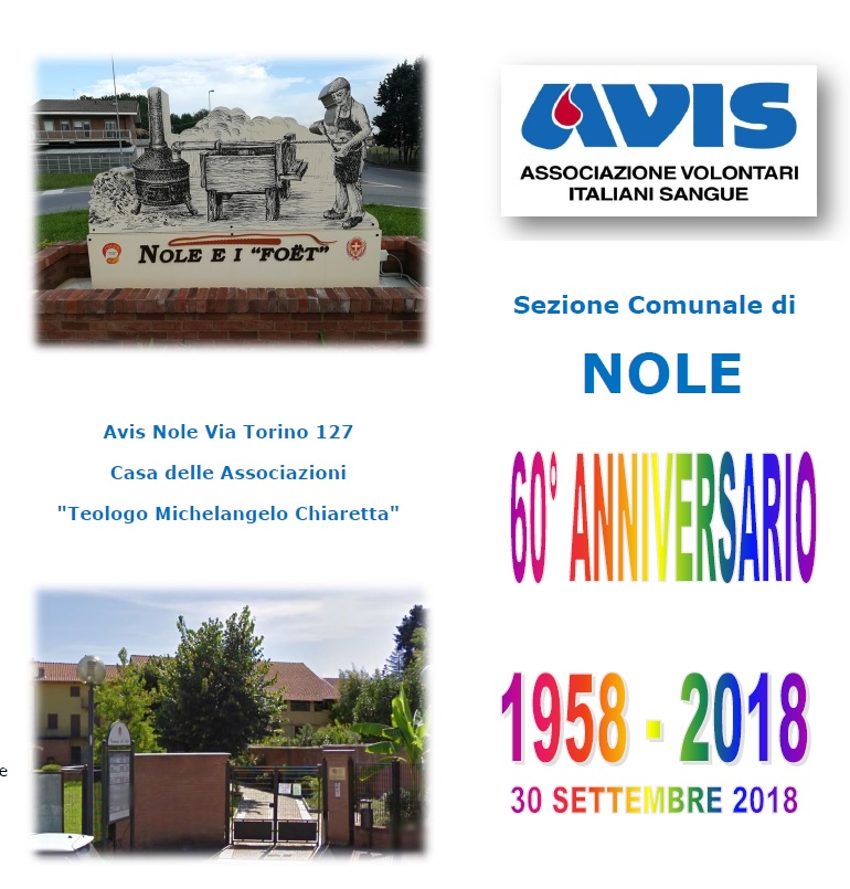 Il 30 settembre 2018 l'AVIS comunale di Nole festeggia il sessantesimo anno di attività (1958 - 2018).