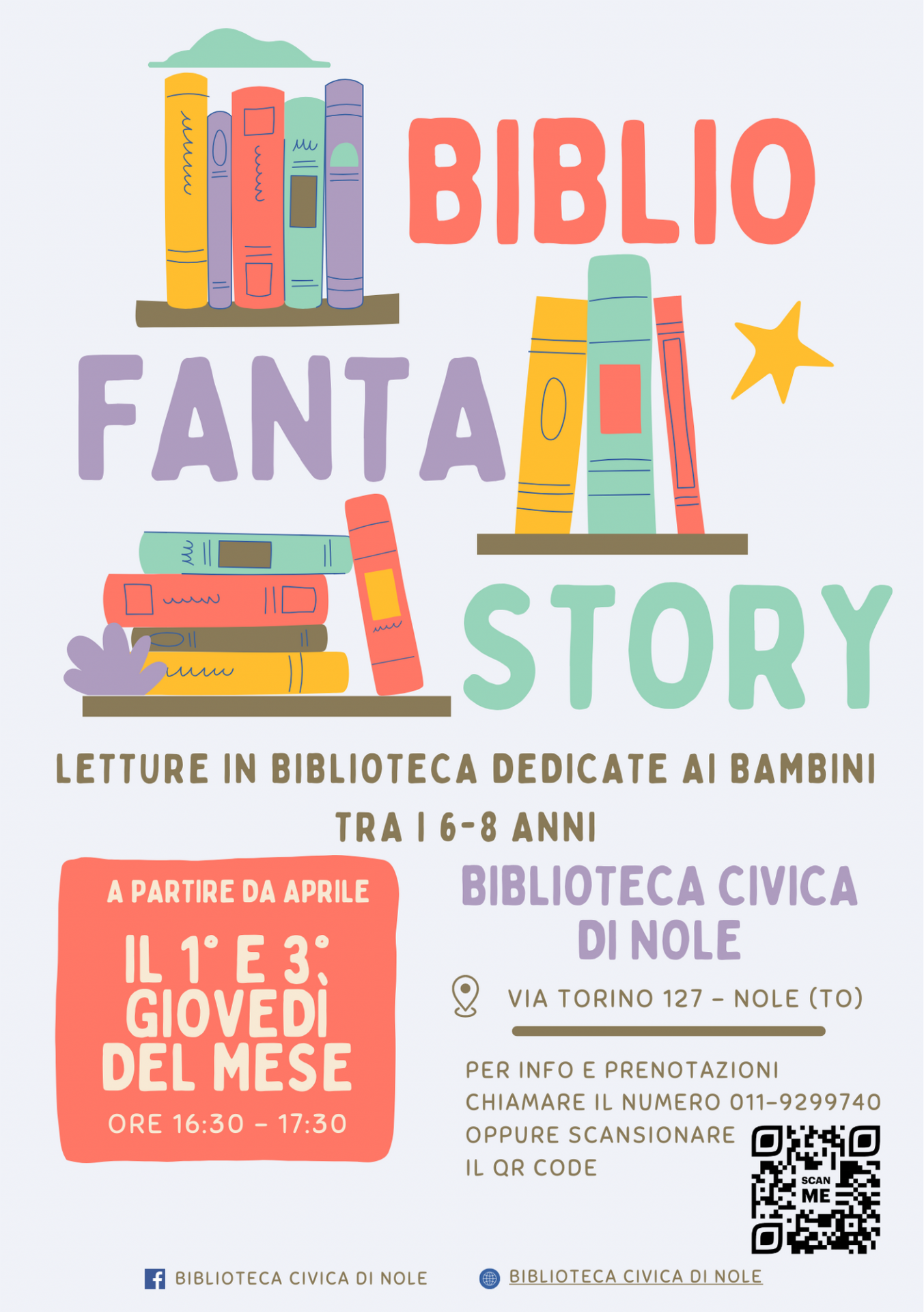 Le letture si terranno nella Sala lettura della Biblioteca Civica di Nole il 1° e il 3° giovedì del mese alle ore 16:30.