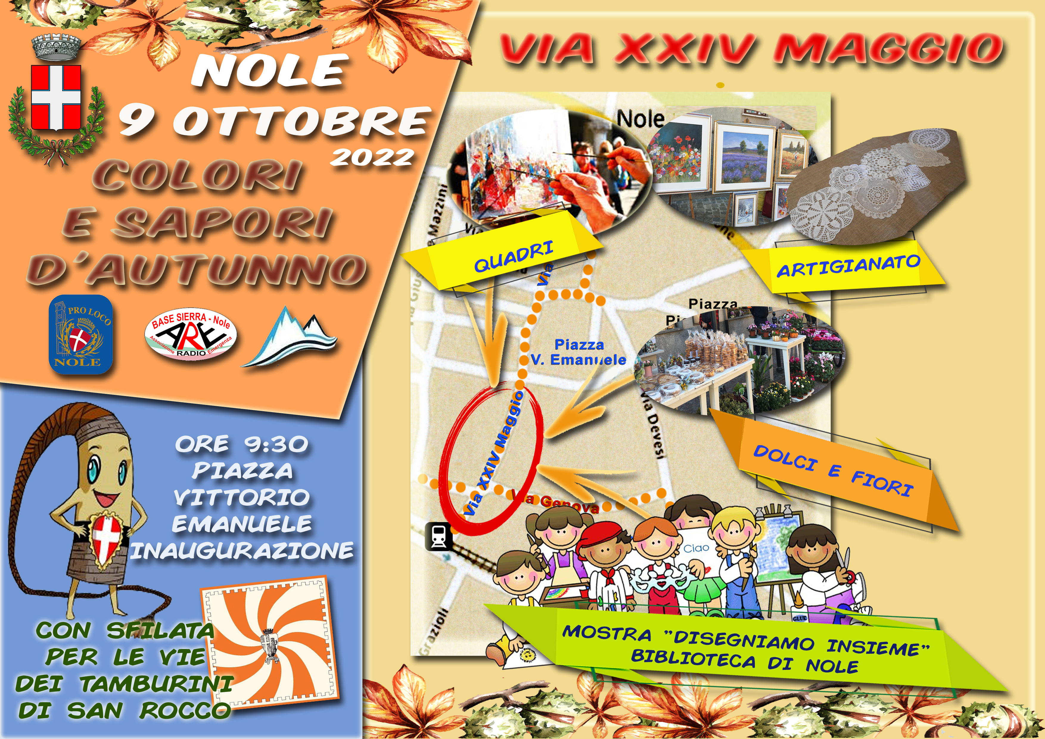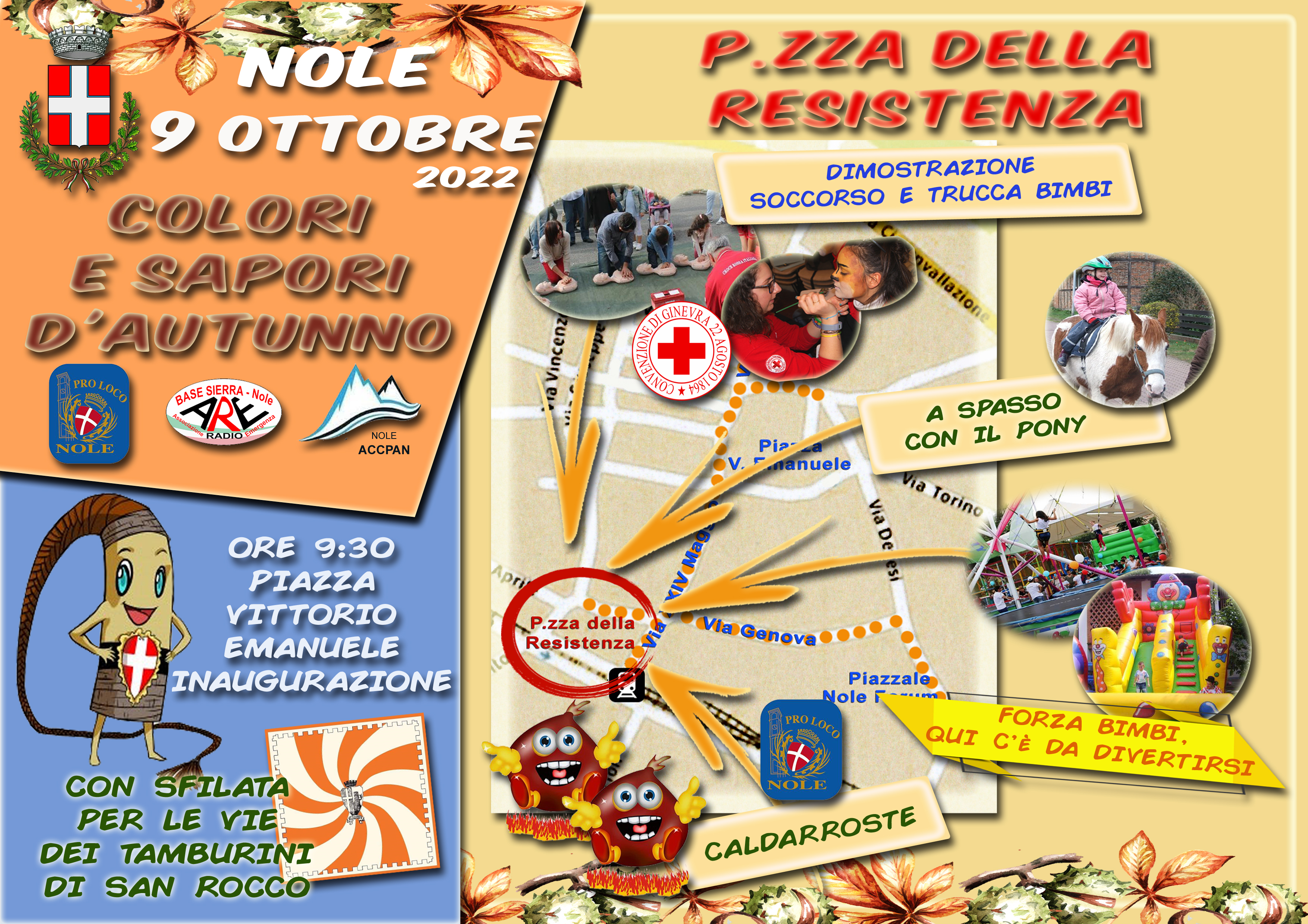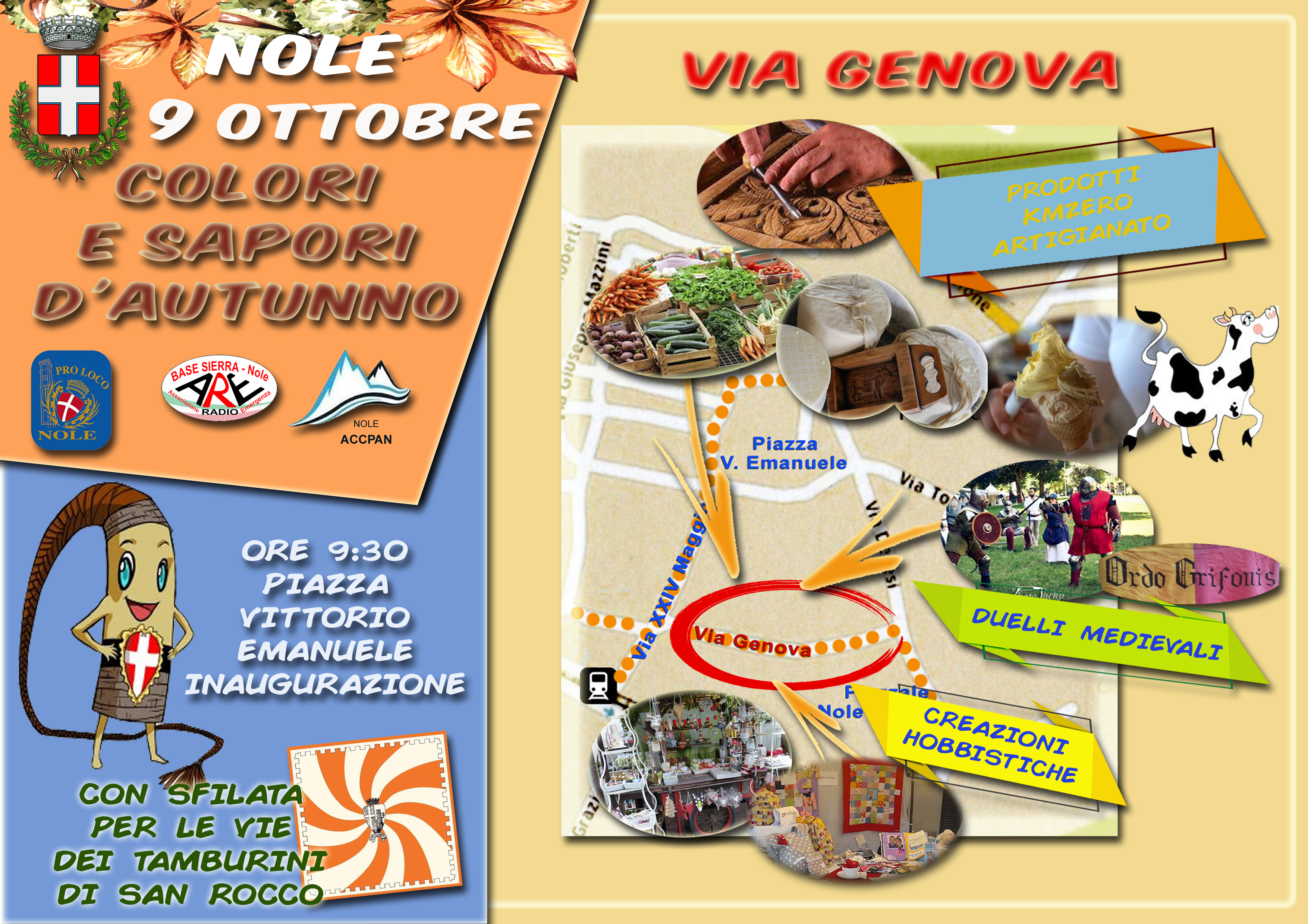 Domenica 9 ottobre 2022 si terrà la fiera "Colori e sapori d'autunno". -Inaugurazione alle 9,30 in piazza Vittorio Emanuele con i tamburini di San Rocco. -Ore 15,30 concerto in piazza del Corpo Musicale di Nole; -Ore 16,30 sonorità celtiche con "Il bardo e la volpe".