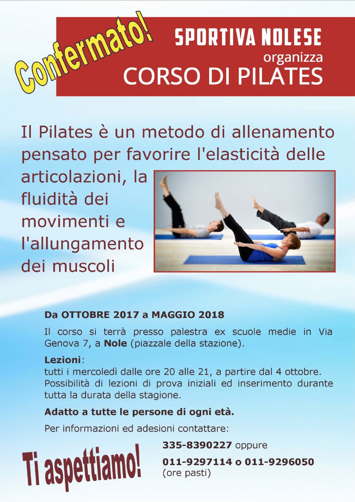 La Sportiva Nolese organizza anche per il 2017/2018 il corso di pilates, metodo di allenamento studiato per favorire l'elasticità delle articolazioni, fluidità di movimento e allungamento muscolare.