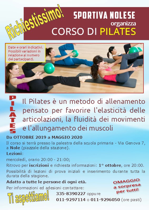 La Sportiva Nolese organizza un corso di pilates da ottobre 2019 a maggio 2020.