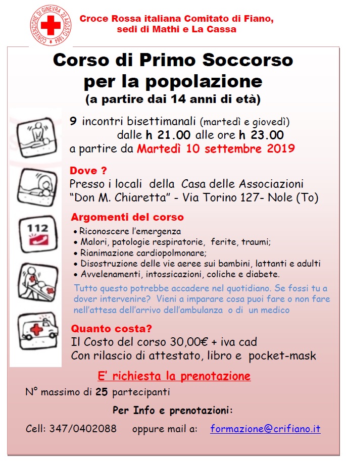 La CRI organizza un corso di primo soccorso per la popolazione a partire dai 14 anni di età.