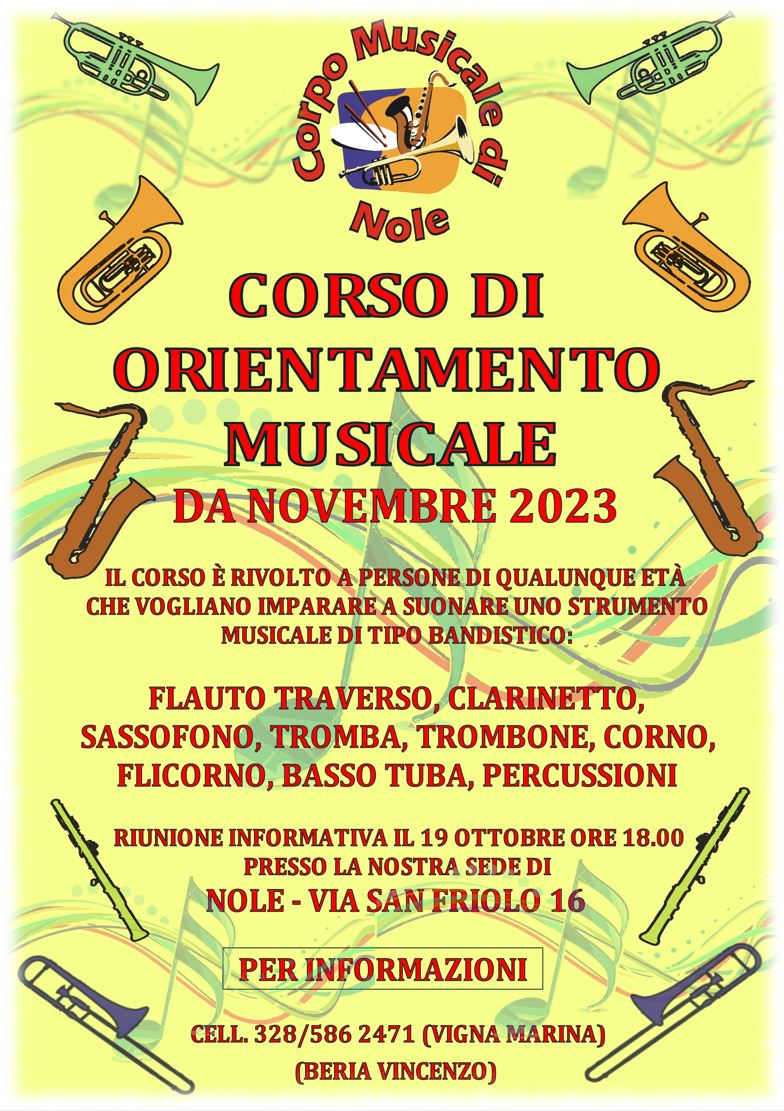Il Corpo Musicale di Nole invita la cittadinanza interessata a partecipare al corso musicale. La riunione informativa si terrà il 19 ottobre alle ore 18:00.