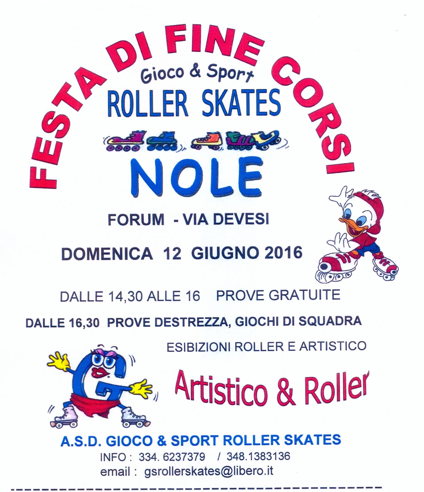 Domenica 12 giugno 2016 si terrà la festa di fine corsi A.S.D. GIOCO & SPORT ROLLER SKATES, presso il "Nole - Forum" di Via Devesi (ex Erber).