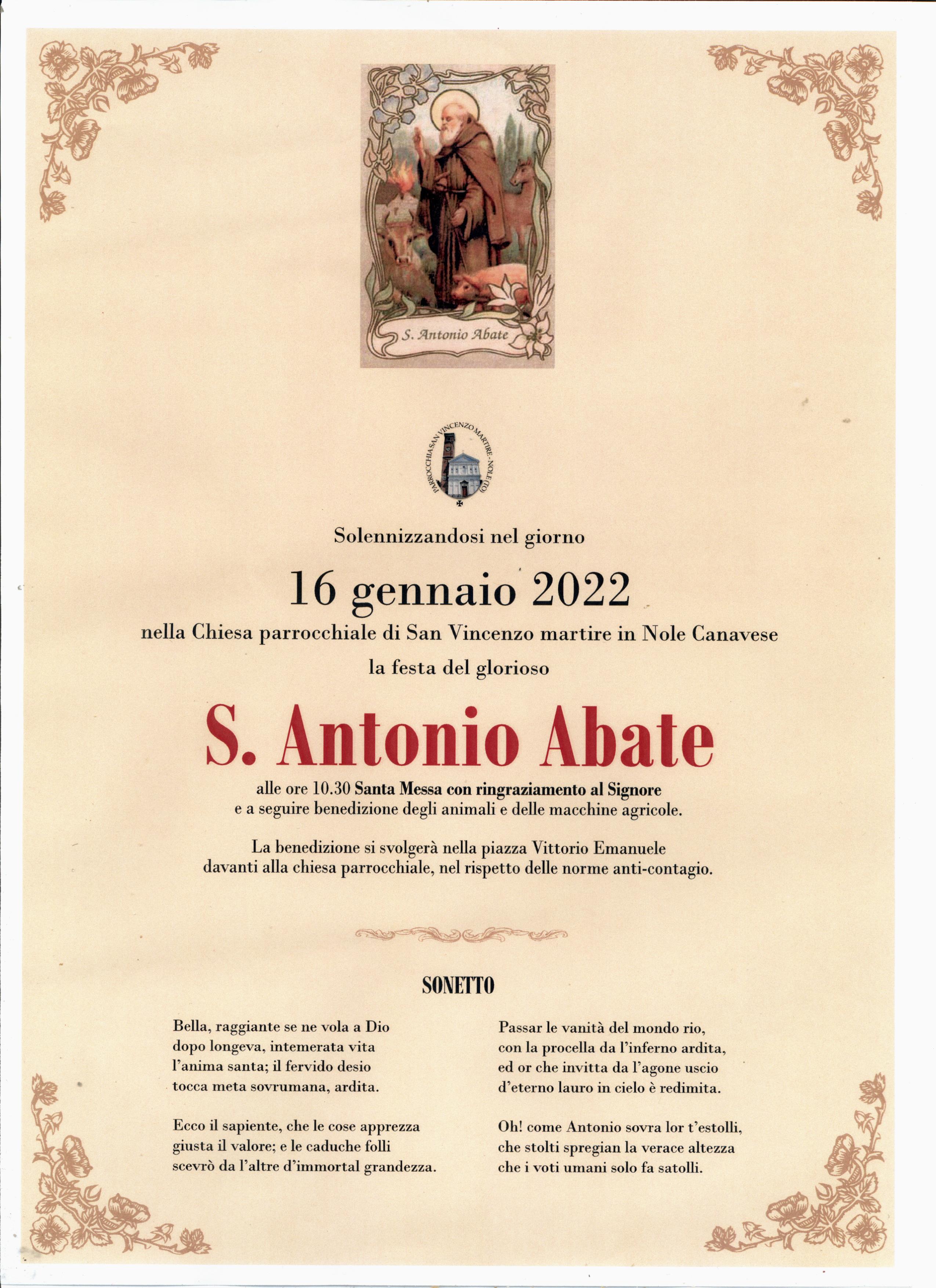 Domenica 16 gennaio 2022 nella chiesa parrocchiale di S.Vincenzo Martire si terrà la festa di S.Antonio Abate.