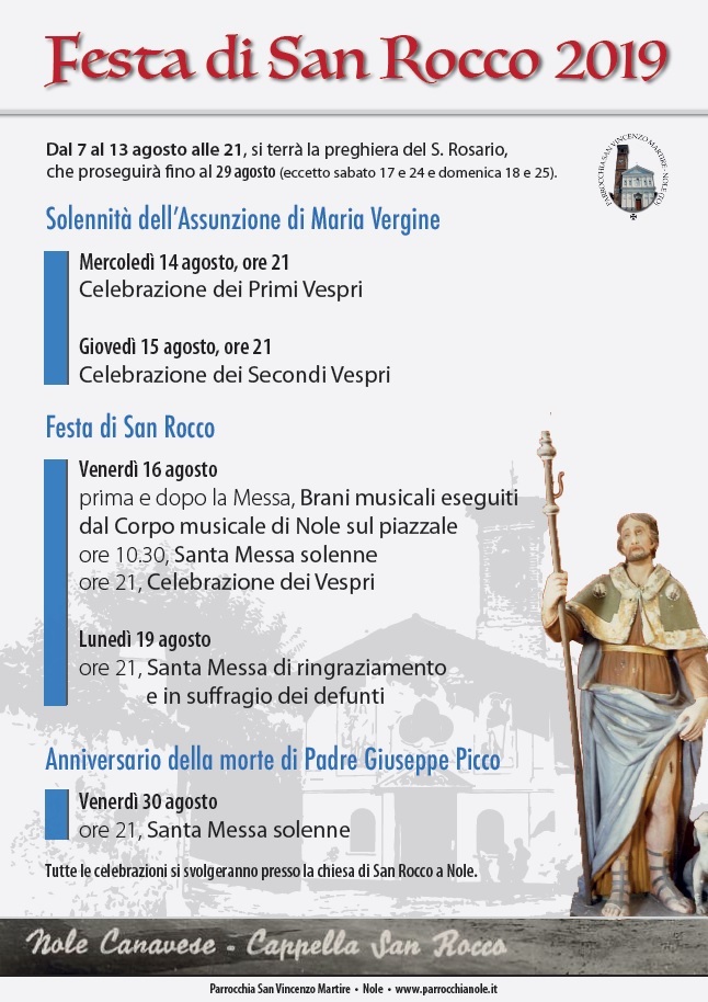 Programma della festa di San Rocco 2019.