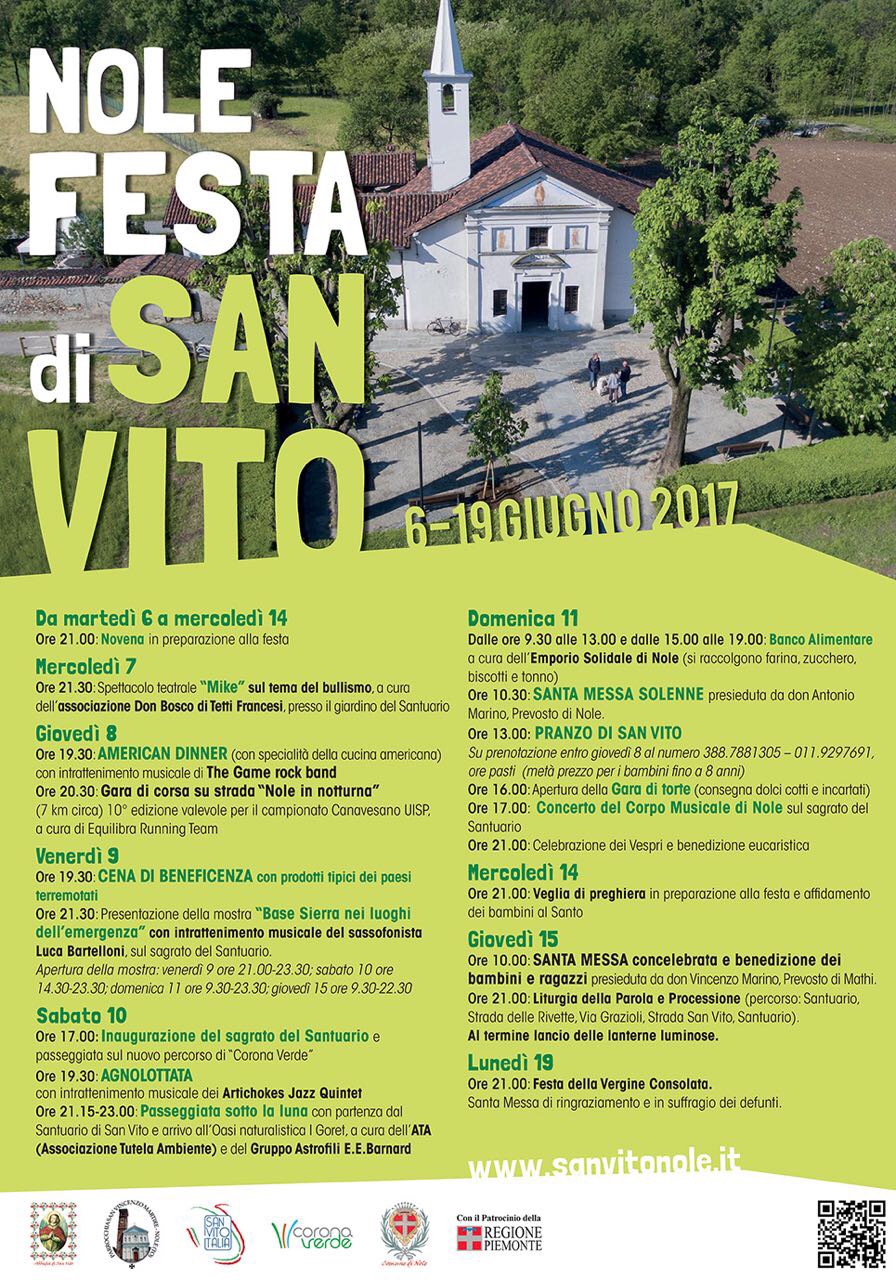 Come di consueto, la festa di San Vito (compatrono di Nole) si terrà dal 6 al 19 giugno 2017.