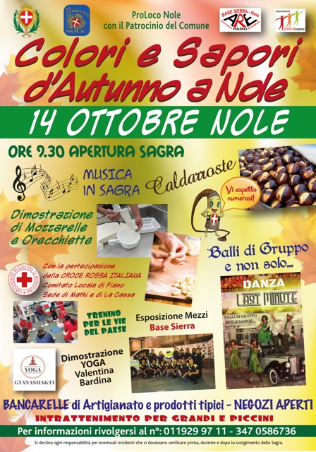 Domenica 14 ottobre 2018 torna il tradizionale appuntamento fieristico autunnale di Nole: "Colori e sapori d'autunno". Ore 9,30 apertura sagra.