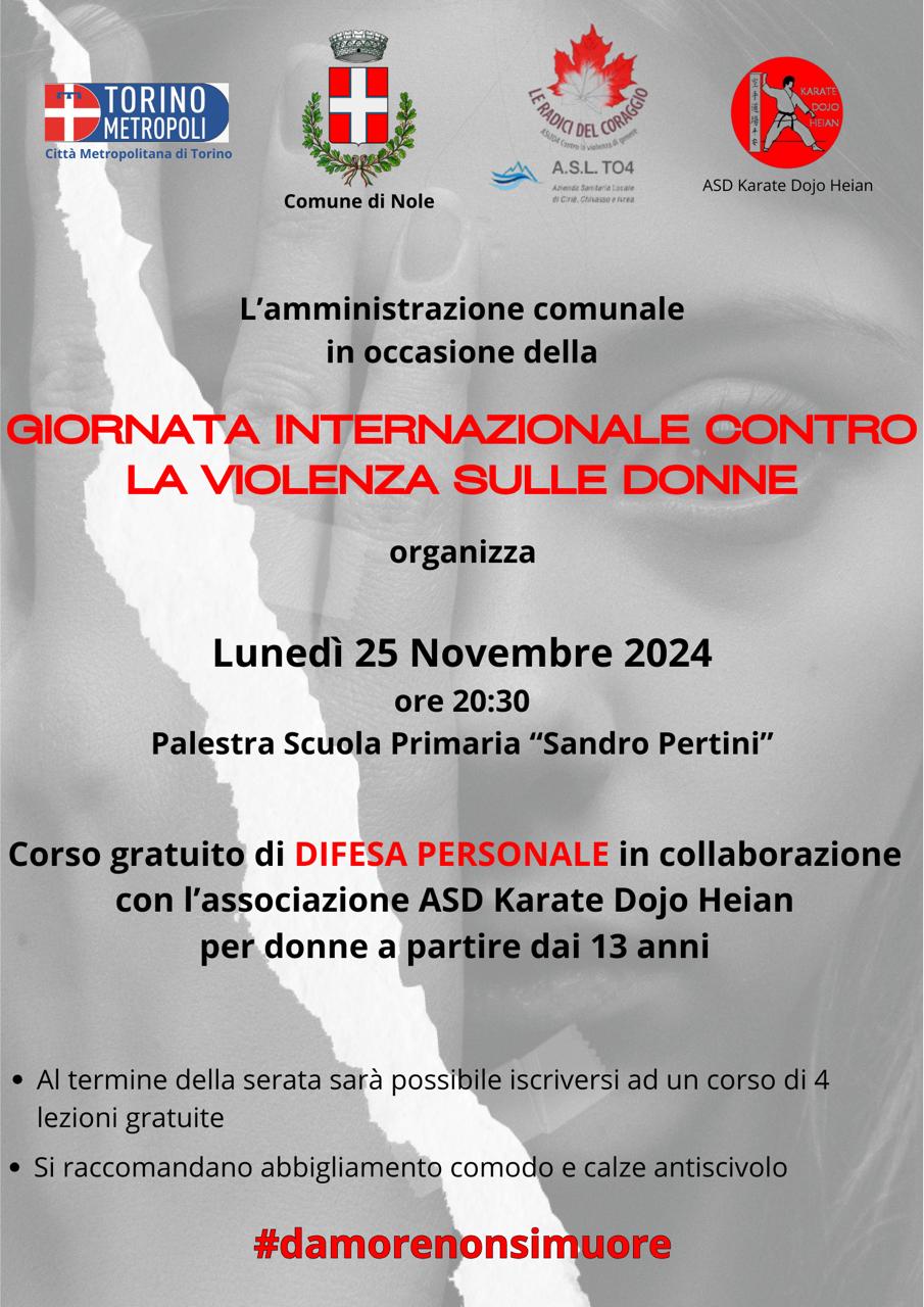 L’amministrazione Comunale, vista l’importanza della giornata e il sempre più crescente numero di vittime di violenza di genere, ha voluto dare la possibilità alle donne del territorio di poter partecipare ad un corso gratuito di difesa personale in collaborazione con l’A.S.D. Karate Dojo Heian.