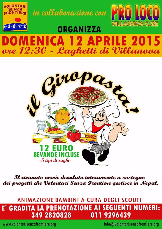 Domenica 12 aprile 2015, l'Associazione Volontari senza Frontiere, in collaborazione con la Pro Loco, organizza IL GIROPASTA.