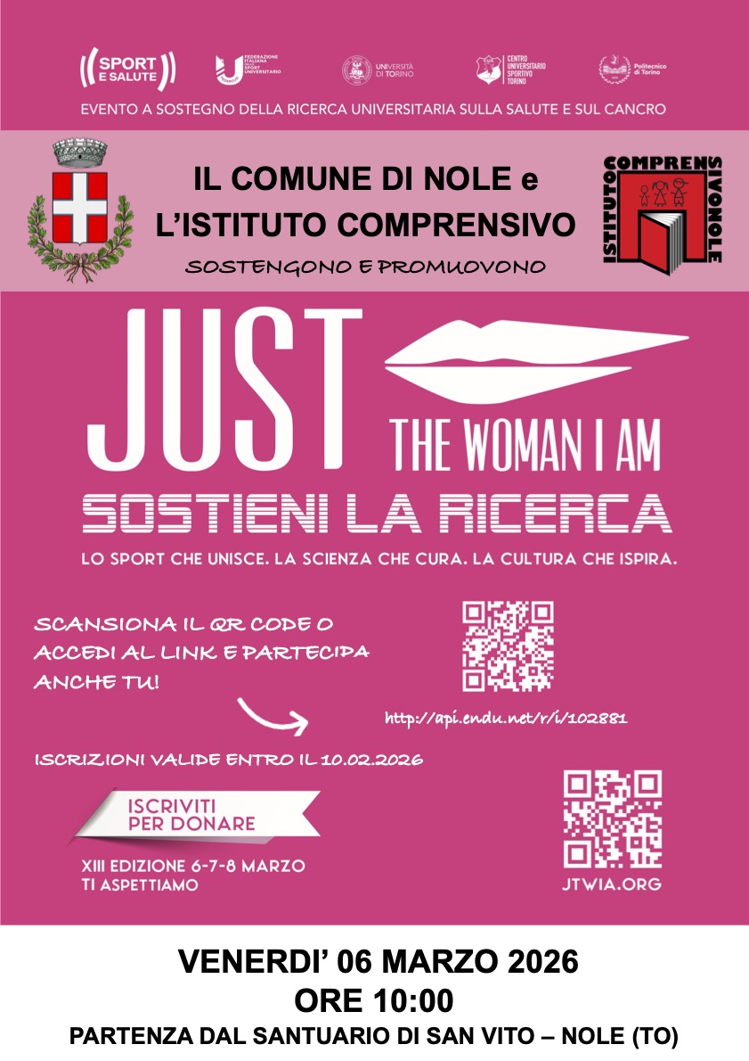L’iniziativa, organizzata dal Comune di Nole in collaborazione con l’Istituto Comprensivo di Nole, è in programma venerdì 6 marzo 2026 e rappresenta un’occasione per unire sport, salute, solidarietà, parità di genere e senso di comunità in un unico evento.