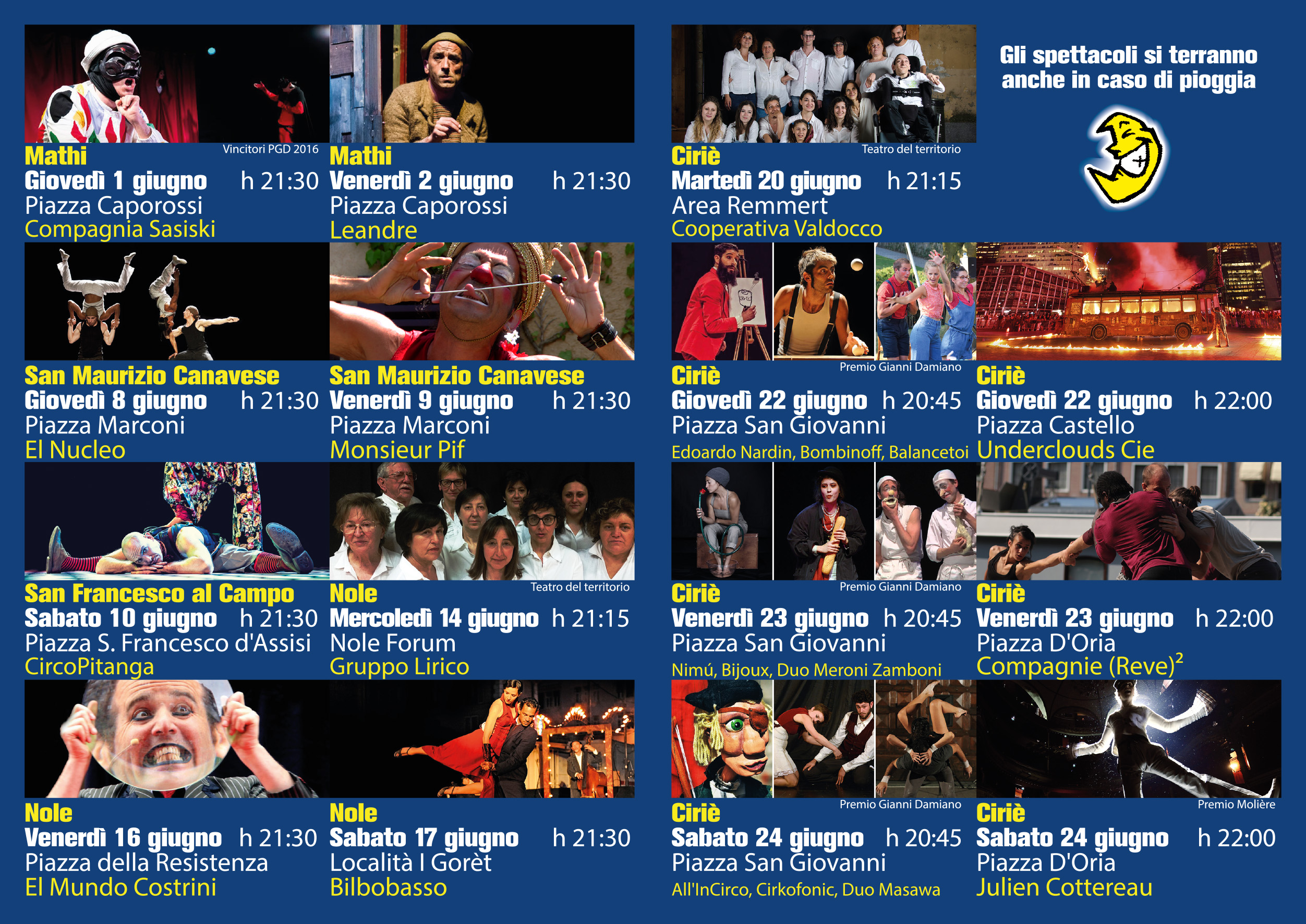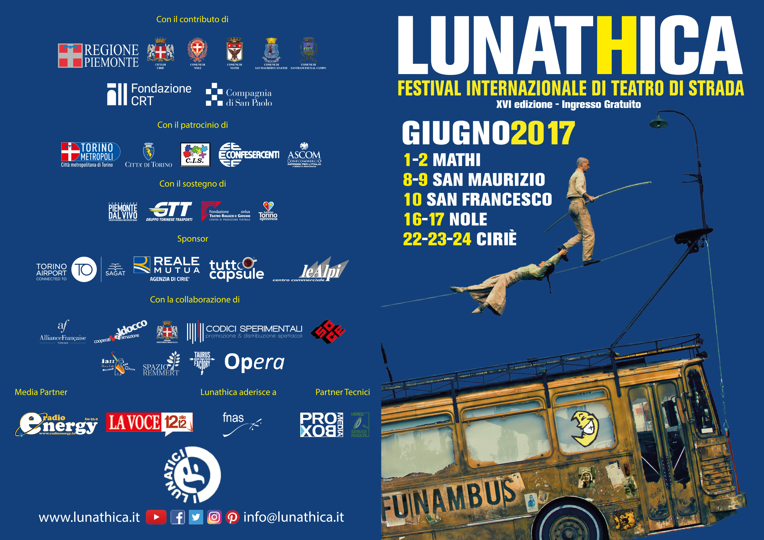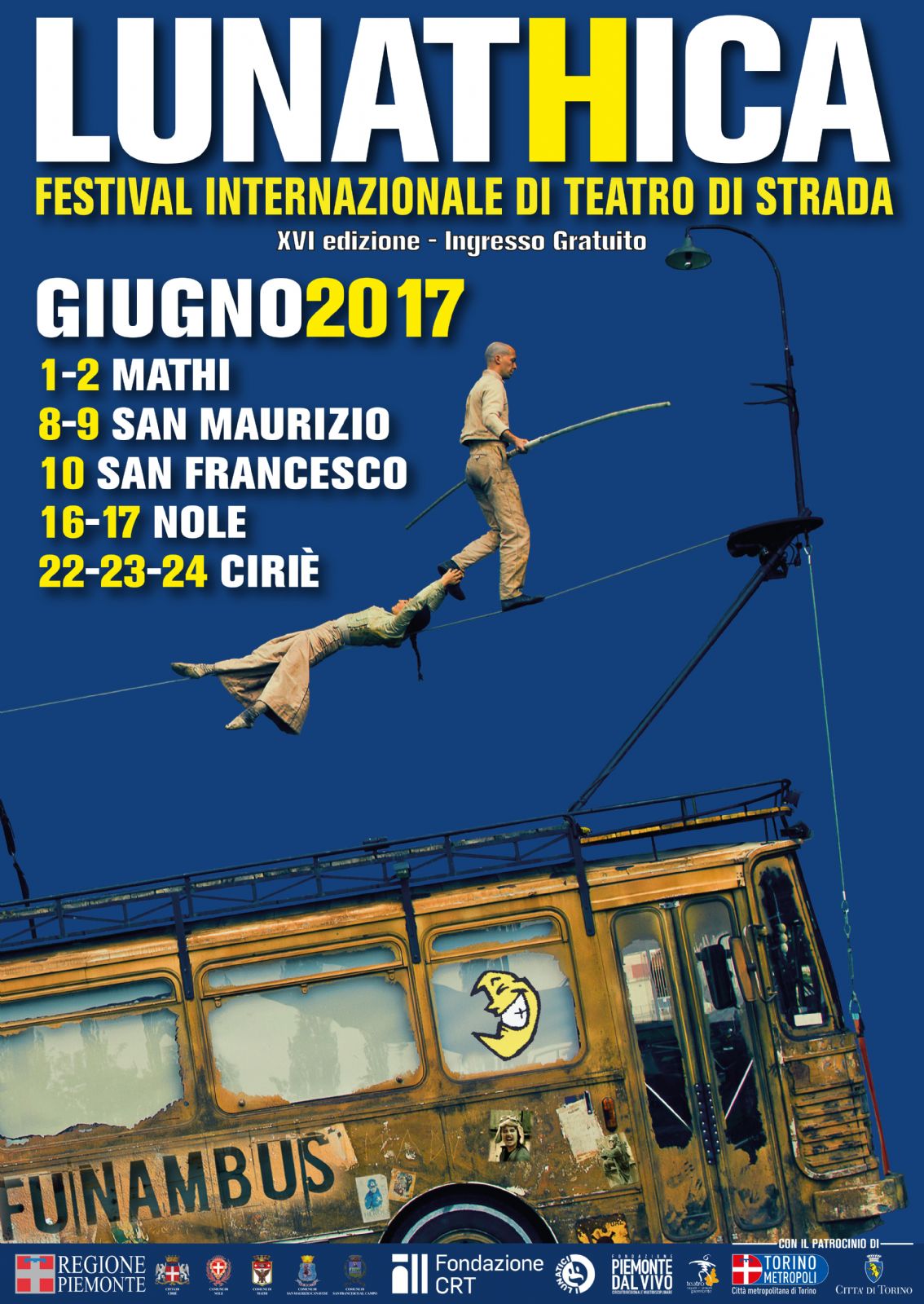 La XVI edizione di Lunathica – Festival Internazionale di Teatro di Strada si terrà dal 2 al 24 giugno 2017 nei comuni di Ciriè, Nole, Mathi, San Maurizio Canavese e San Francesco al Campo (TO).
