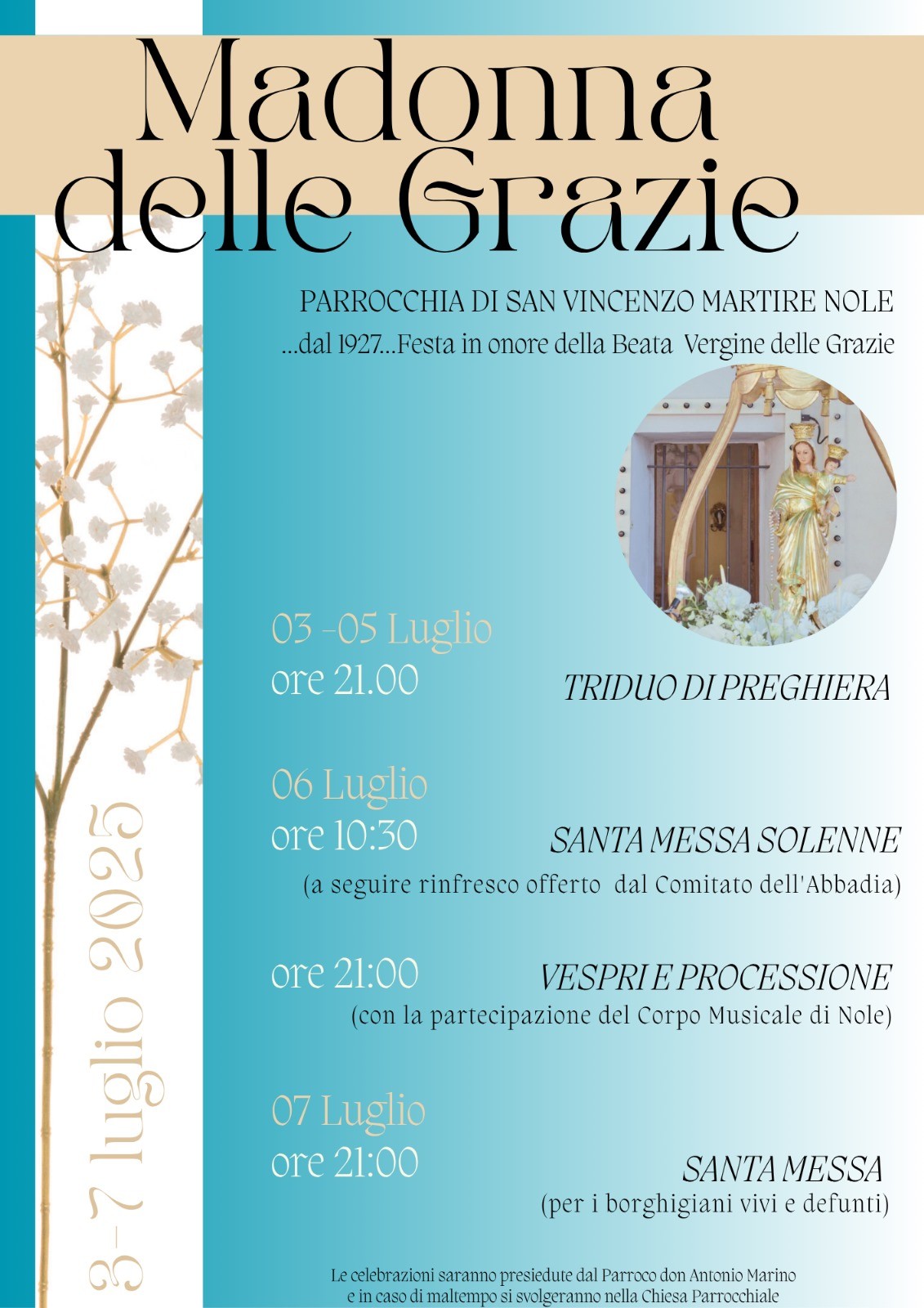 Le celebrazioni saranno presiedute dal Parroco don Antonio Marino e in caso di maltempo si svolgeranno nella Chiesa Parrochiale