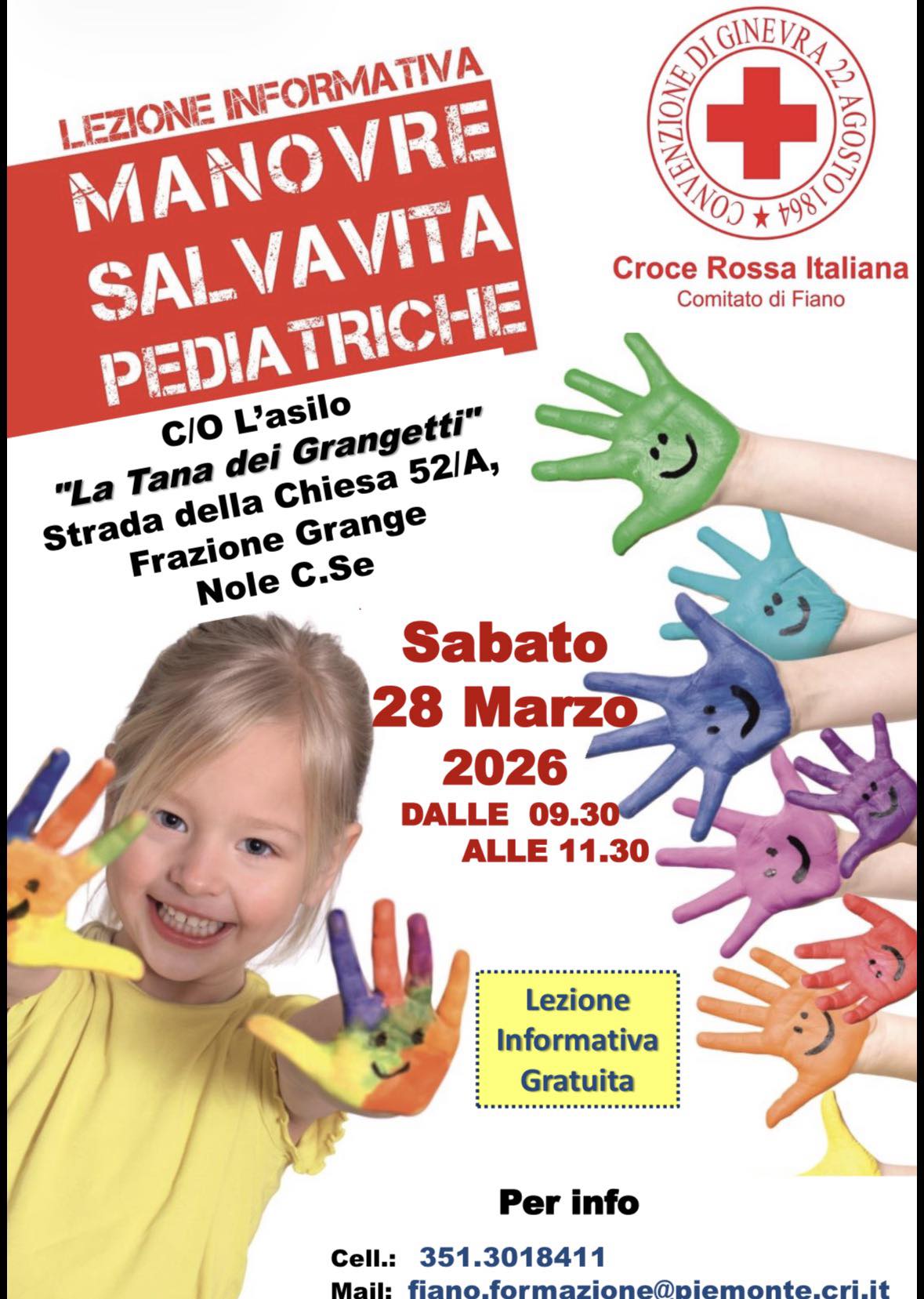 Per questo motivo, sabato 28 marzo - dalle 9,30 alle 11,30 - ci sarà una lezione informativa sulle manovre salvavita pediatriche all’asilo nido La Tana dei Grangetti, in strada della Chiesa 52/a a Grange. Un incontro gratuito, aperto a tutti, con l’obiettivo di diffondere la cultura della prevenzione e fornire strumenti utili nella gestione delle emergenze quotidiane.