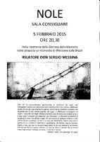 Giovedì 5 febbraio 2015, nella sala consiliare del Comune di Nole, alle ore 20,30 si terrà un momento di riflessione sulla Shoah a cura di don Sergio Messina.