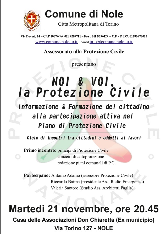 | Organizzazione | Comune di Nole, Assessorato alla Protezione Civile |