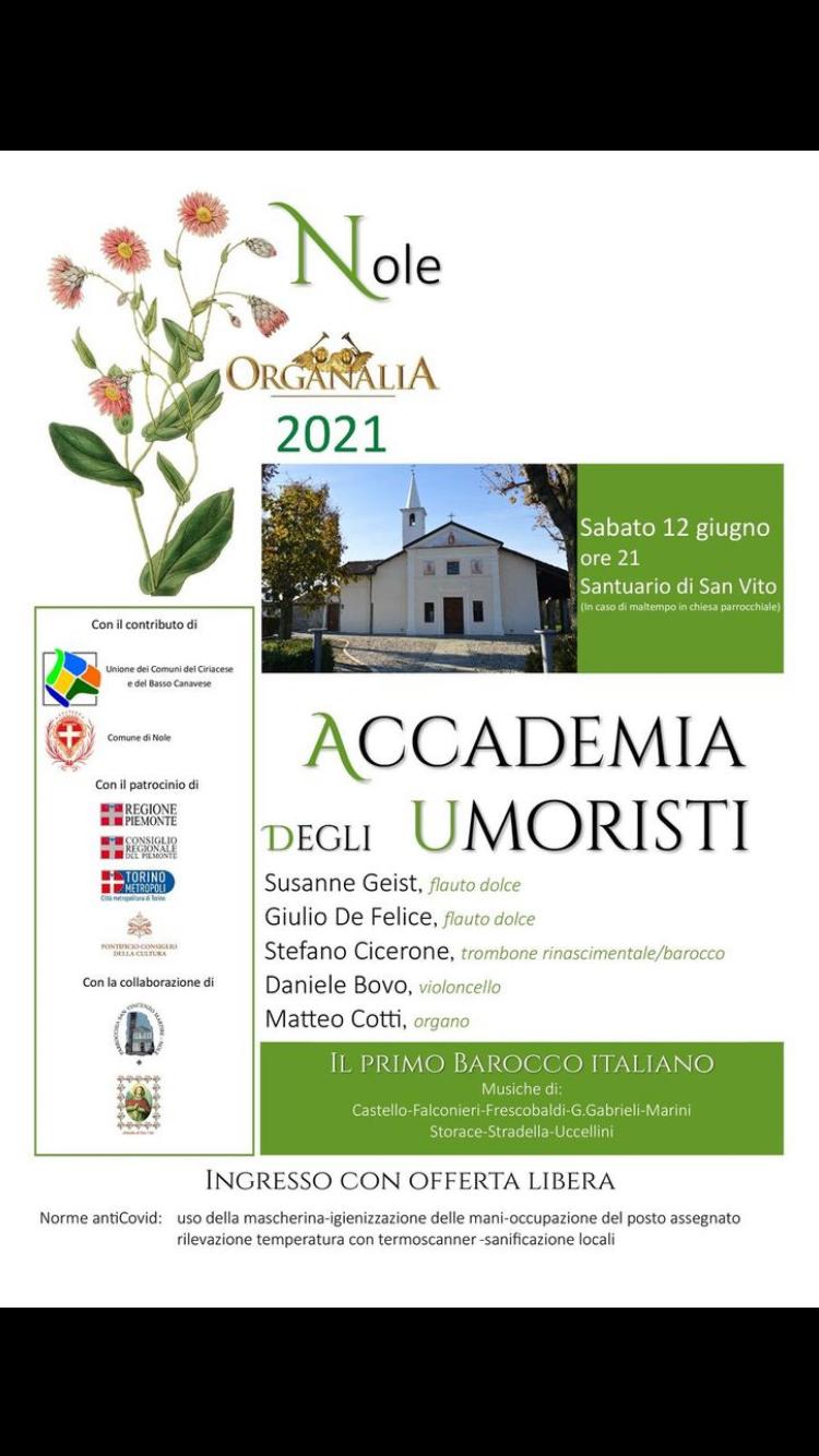 Nell'ambito dei festeggiamenti di San Vito, sabato 12 giugno 2021 alle ore 21,00 presso il Santuario di San Vito si terrà il concerto de "Organalia" 2021, a cura de Accademia degli umoristi.