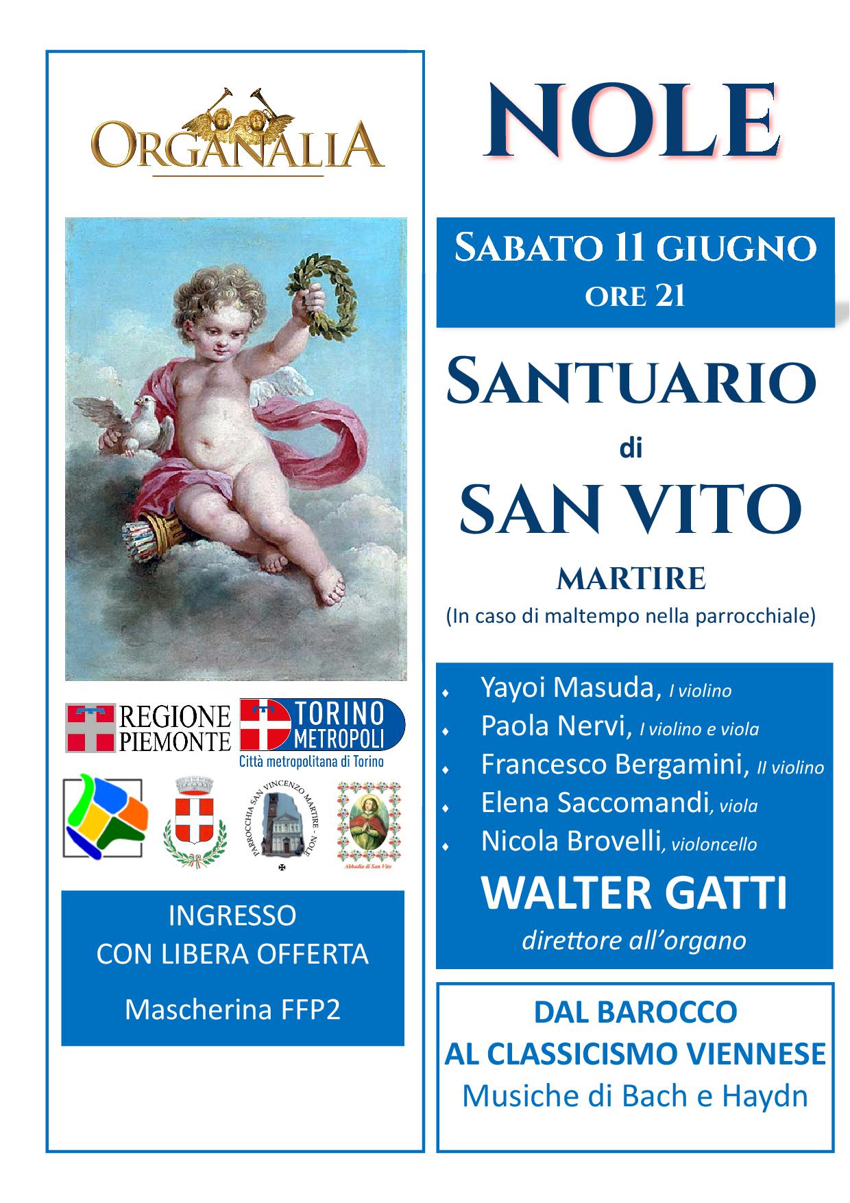 Sabato 11 giugno 2022, alle ore 21,00, presso il Santuario di S.Vito martire si terrà il concerto "Dal barocco al classicismo viennese" con musiche di Bach e di Haydn.