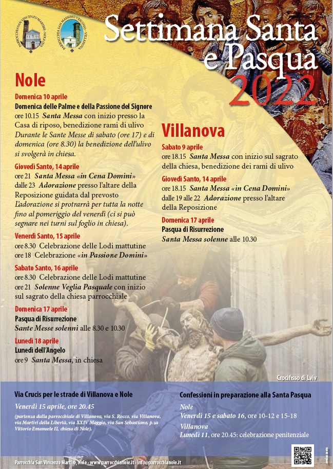 Programma della Settimana Santa e Pasqua 2022 a partire dal 10 aprile, Nole e Villanova Canavese.