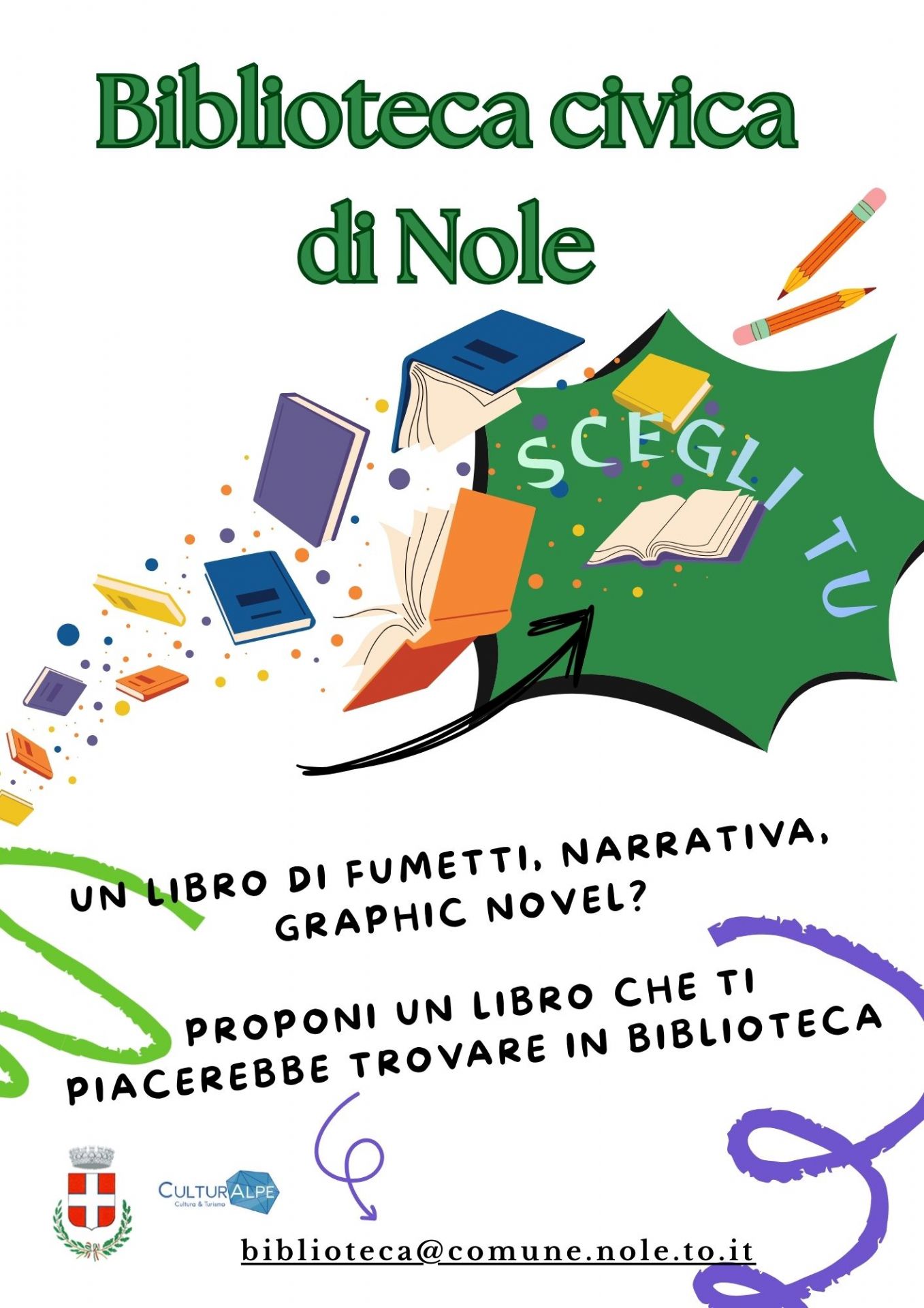 La biblioteca di Nole, in vista dei nuovi acquisti del 2026, è lieta di raccogliere suggerimenti su cosa vi piacerebbe trovare in biblioteca.