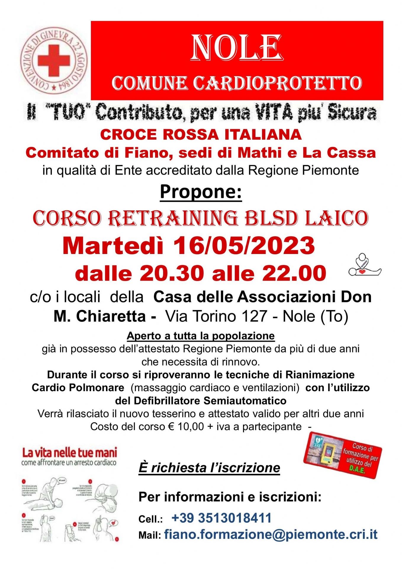 Si informa la popolazione che la Croce rossa - comitato di Fiano, Mathi e La Cassa organizza, in accordo con l’amministrazione, un retraining sull’uso del defibrillatore automatico in data 16 Maggio, alle ore 20.30 presso la Casa delle Associazioni. Per info e iscrizioni contattare i numeri di telefono presenti in locandina.