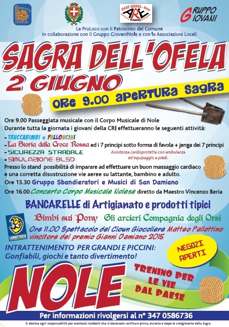 Il prossimo 2 giugno si terrà a Nole la "Sagra dell'ofela". Il programma è già definito e può essere visionato e scaricato.