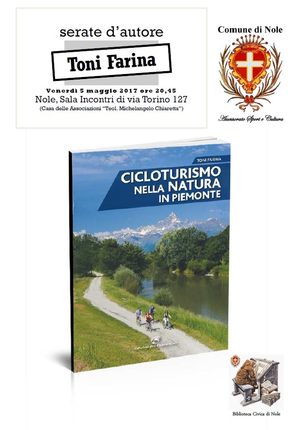 Nell'ambito de "Serate d'autore" l'Assessorato allo Sport e alla Cultura del Comune di Nole, in collaborazione con la Biblioteca Civica di Nole, organizza la presentazione del libro di Toni Farina "CICLOTURISMO NELLA NATURA IN PIEMONTE".