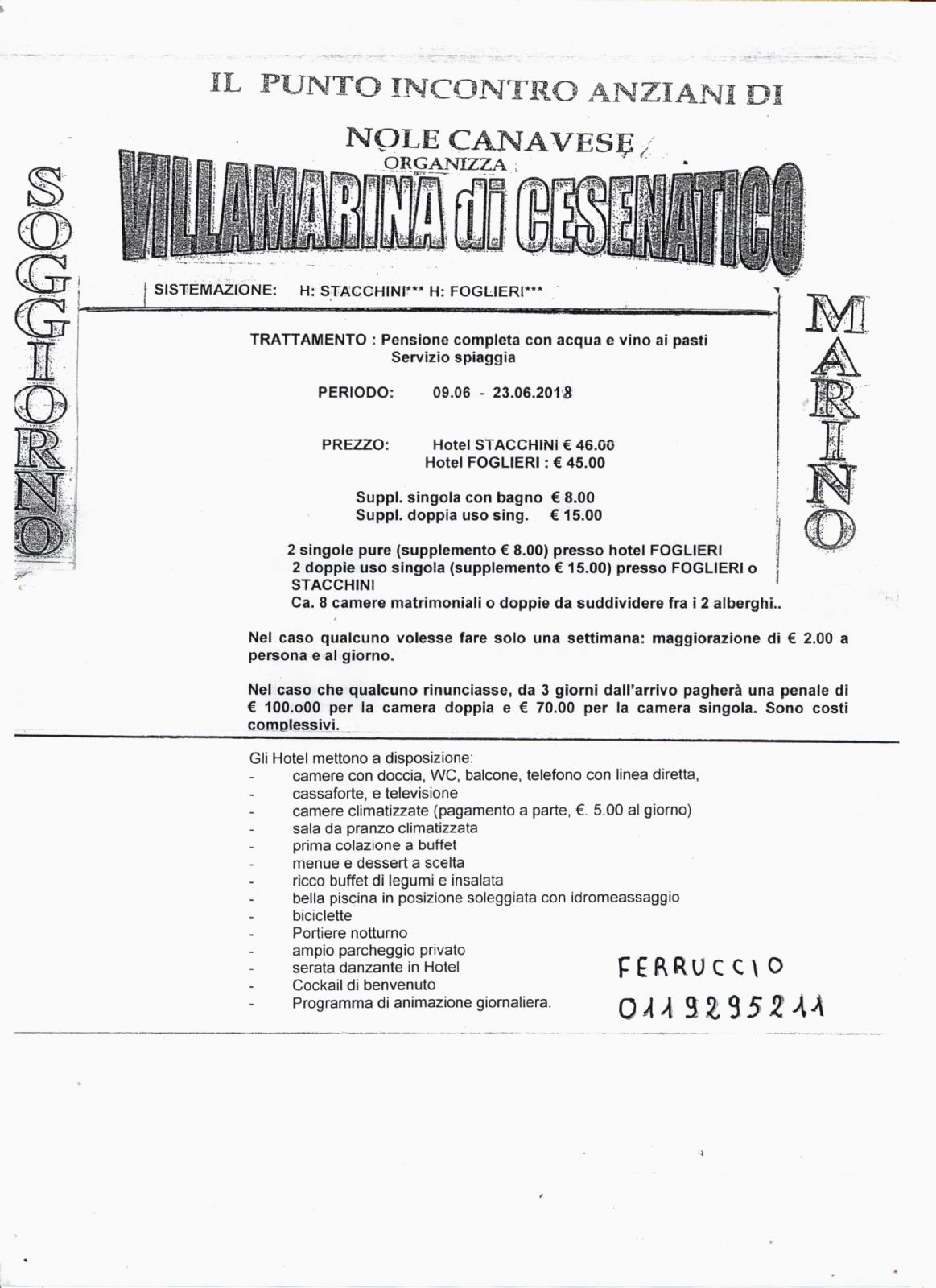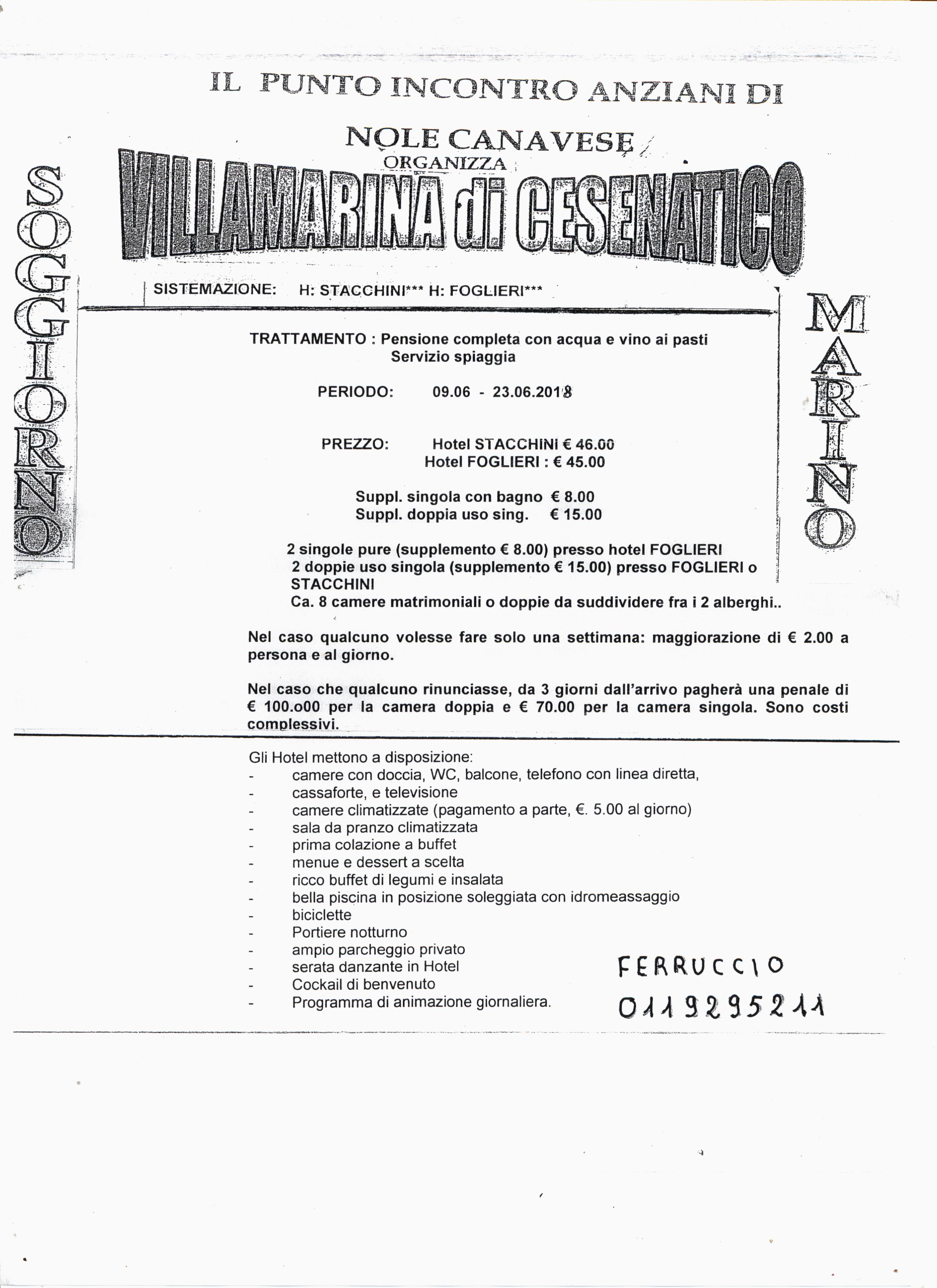 Il Punto Incontro anziani di Nole canavese organizza anche per il 2018 il soggiorno marino a Villamarina di Cesenatico.