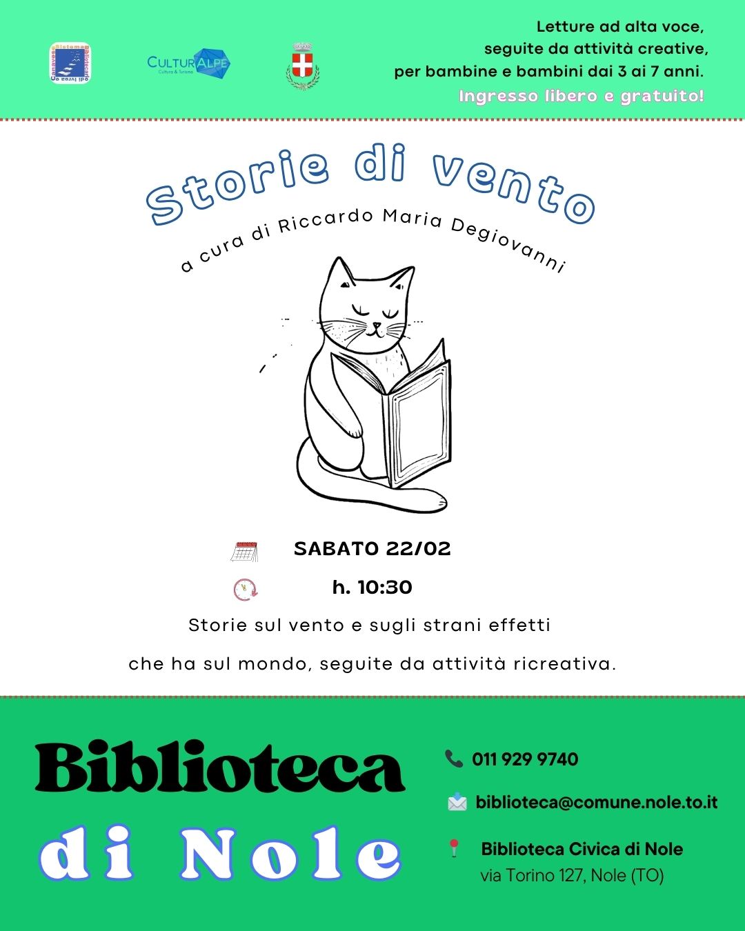 L'attività è rivolta a tutti i bambini e le bambine dai 3 ai 7 anni. Verranno lette storie sul vento e verrà dato spazio alla fantasia con attività ricreative ispirate alle storie lette.