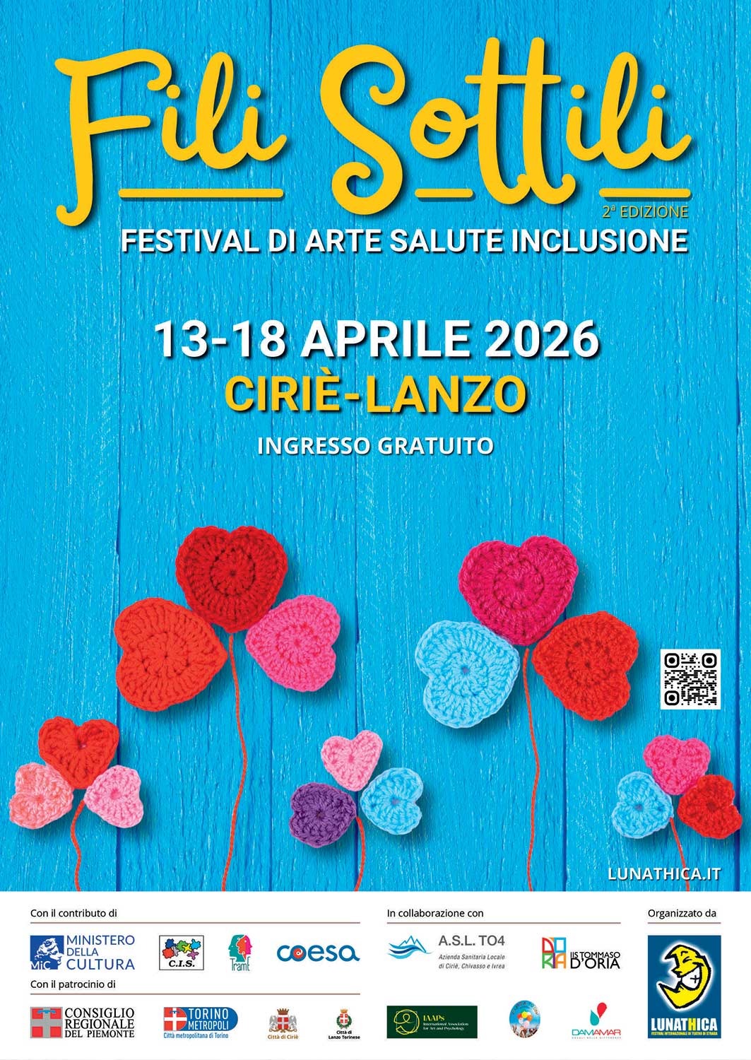 Lunathica presenta Fili Sottili, festival di arte, salute e inclusione con una serie di eventi che si terranno dal 13 al 18 aprile nei Comuni di Cirié e Lanzo Torinese.