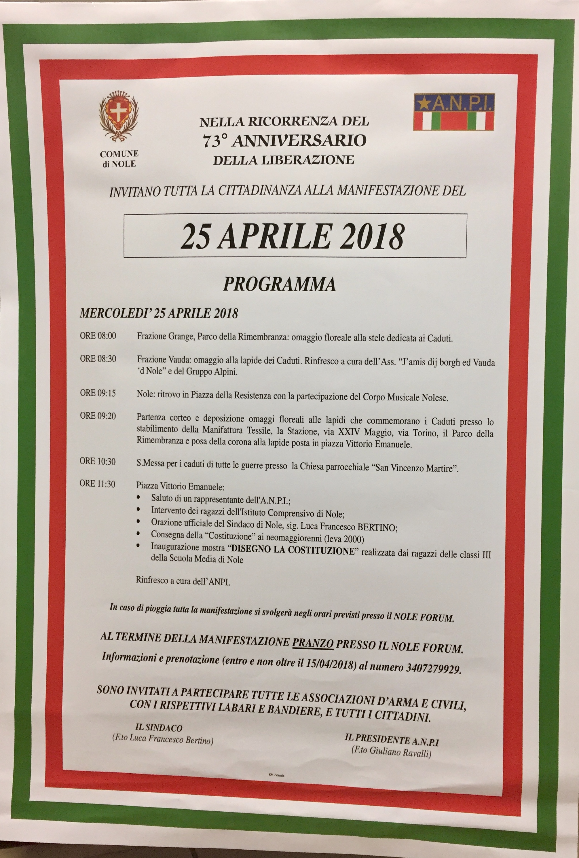 | Organizzazione | ANPI Nole sez. "Aldo Giardino" |