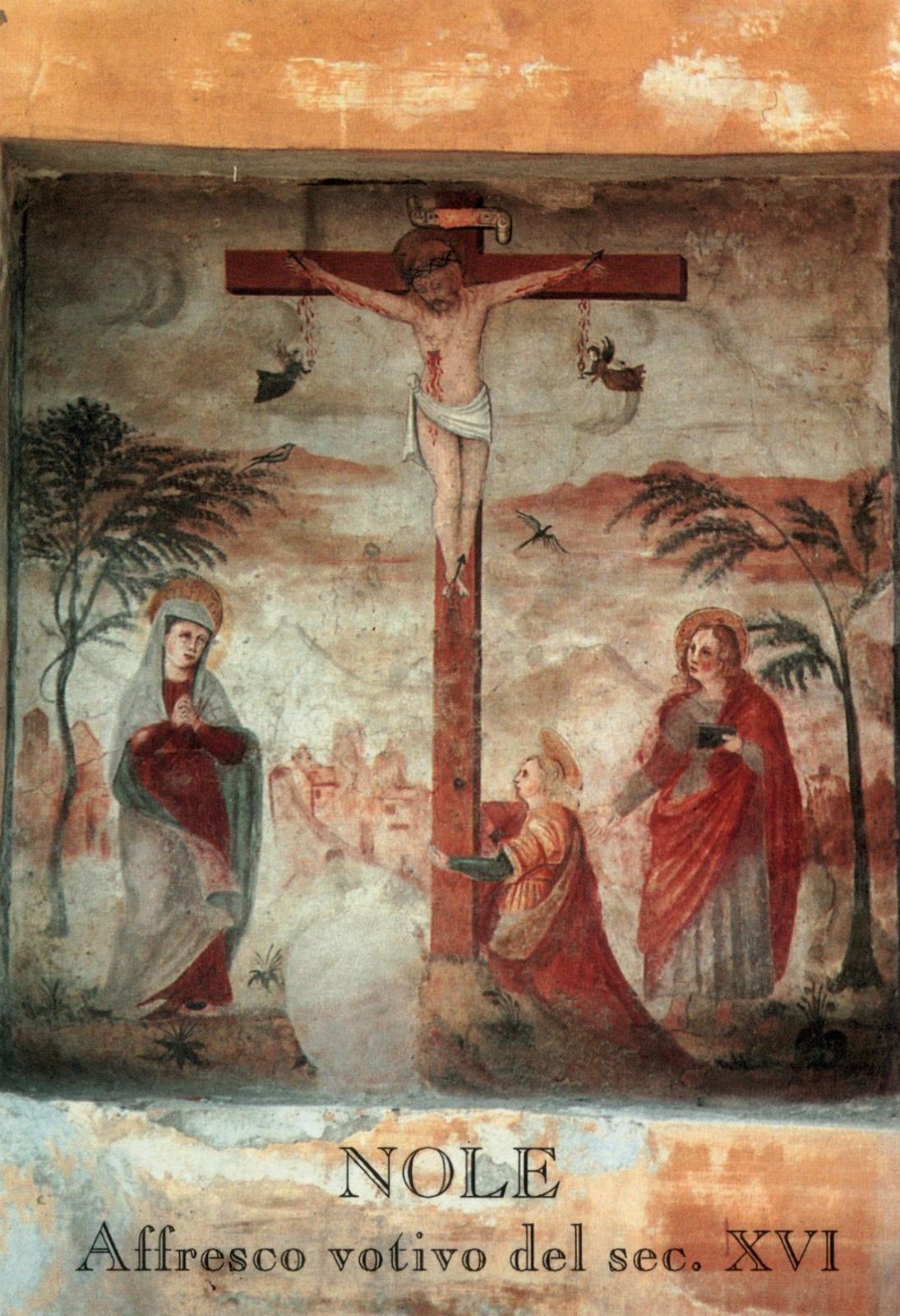 Affresco votivo del XVI secolo raffigurante Gesù in croce